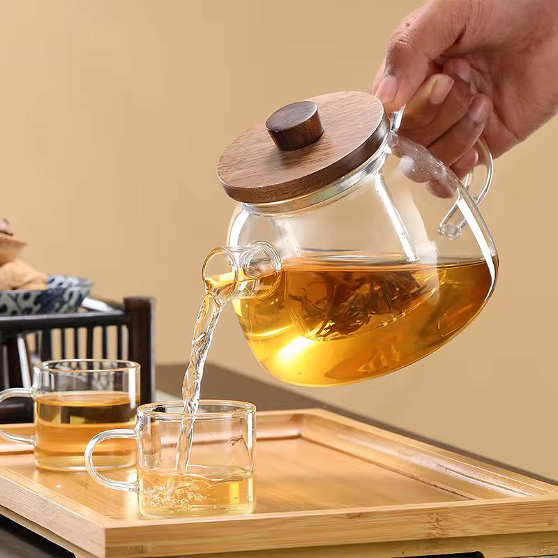 قوری خاص برای پذیرایی از جنس پیرکس شعله مستقیم با ذخامت و شفافیت بسیار بالا،جنس درب این کار چوب آکاسیا با زیره استیل و جنس صافی پیرکس میباشد